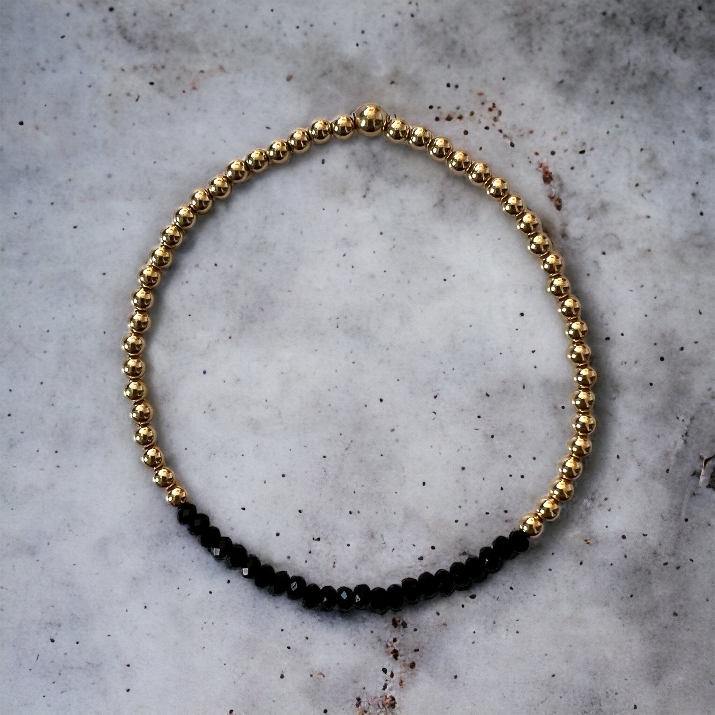 14K gold filled 5mm Gold Balls Bangle With Black Beads