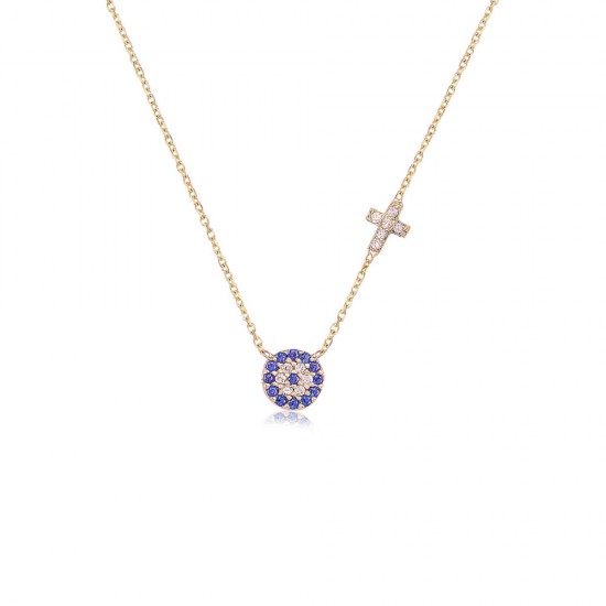 EVIL EYE AND CROSS NECKLACE