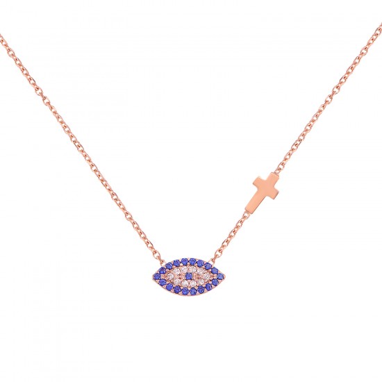 EVIL EYE AND CROSS NECKLACE ROSE PLATED