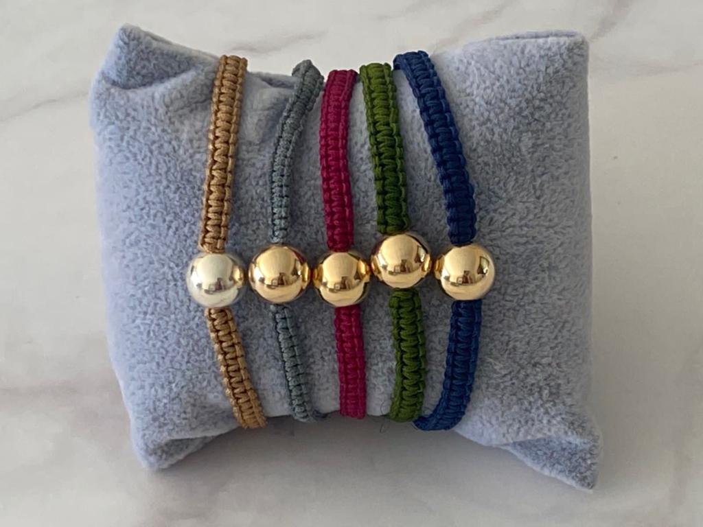 / Macrami Bracelet with Gold Ball in Brown, Grey, Red, Green, Blue