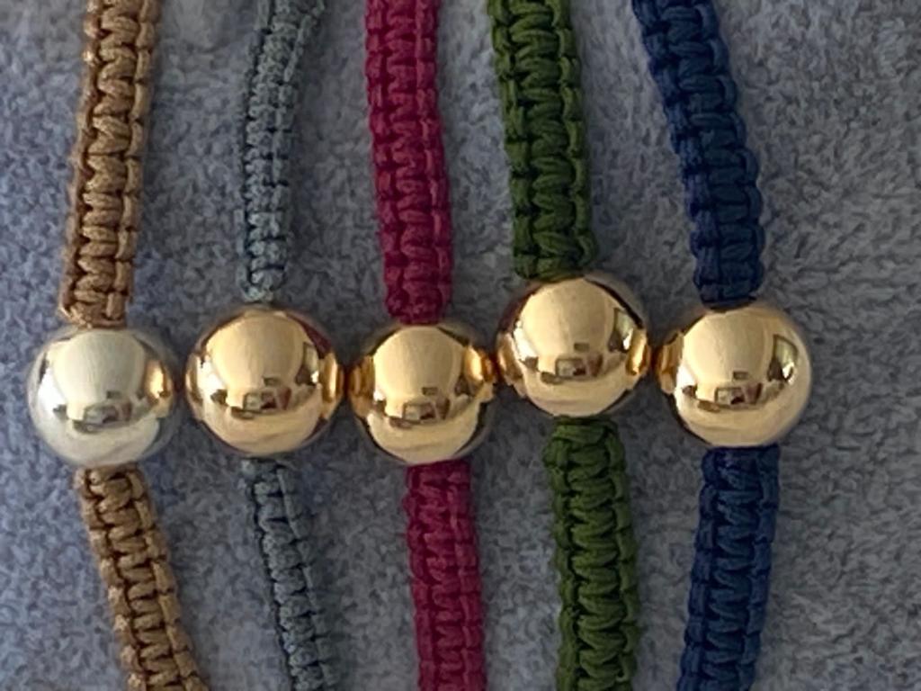 Macrami Bracelet with Gold Ball in Brown, Grey, Red, Green, Blue quantity