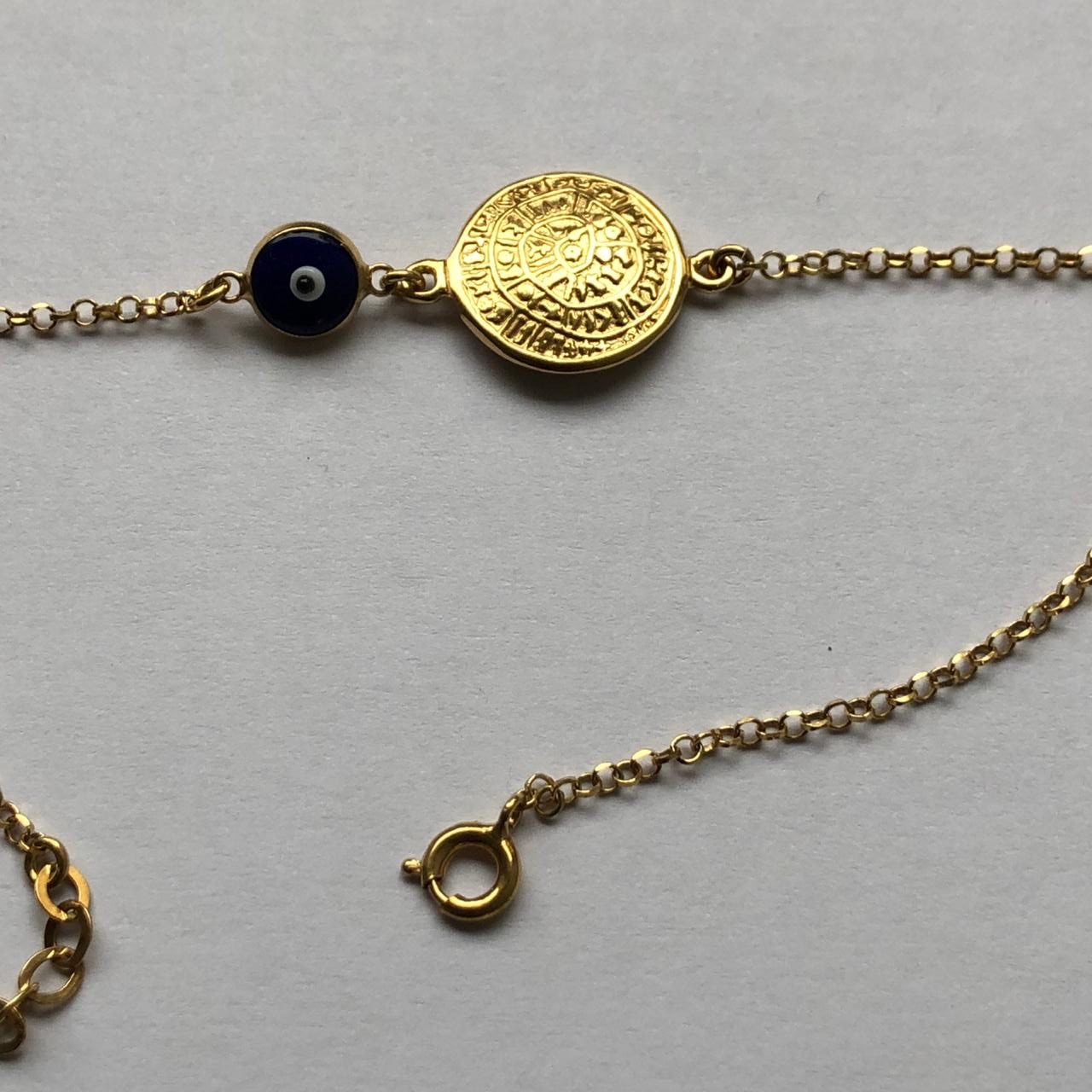 / Silver Gold Plated Phostos Small Disc with Dark Blue Evil Eye
