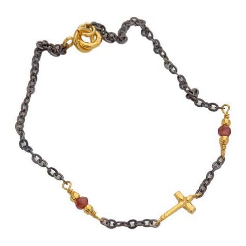STERLING SILVER CHAIN BRACELETB WITH A TINY CROSS AND 2 COLORED STONES