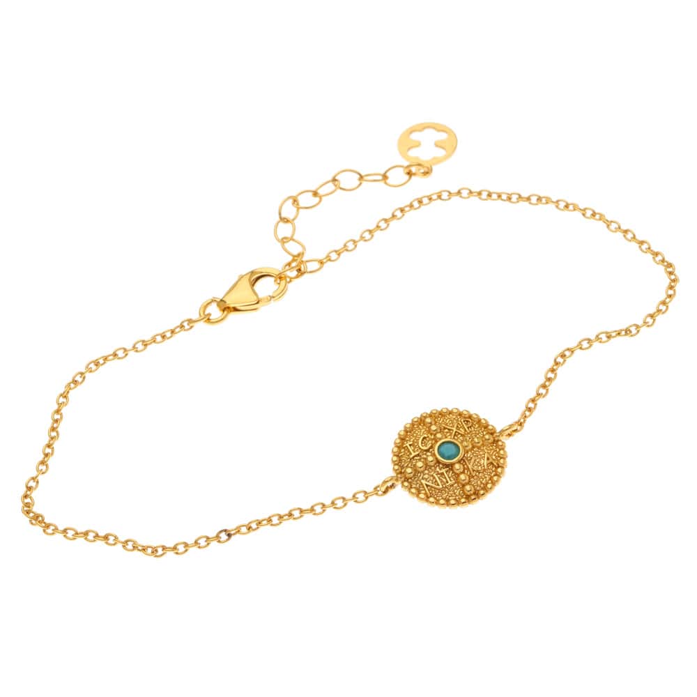 Silver Gold Plated Phostos Large Disc with Light Blue Evil Eye